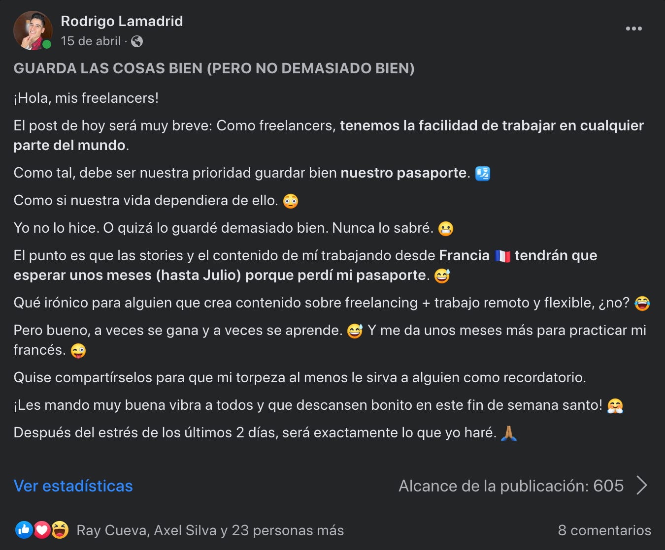 Yo aprovecharé mi viaje como hito para aumentar el valor de mi trabajo y la calidad de clientes que me contratan. ✍️